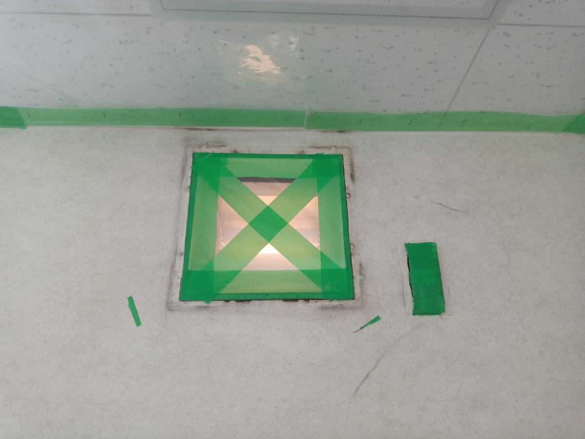 『負圧』は部屋の外に向かって空気が吸い上げられている状態のため、それにより養生が影響を受けないよう、強固に留め付けなければいけません。