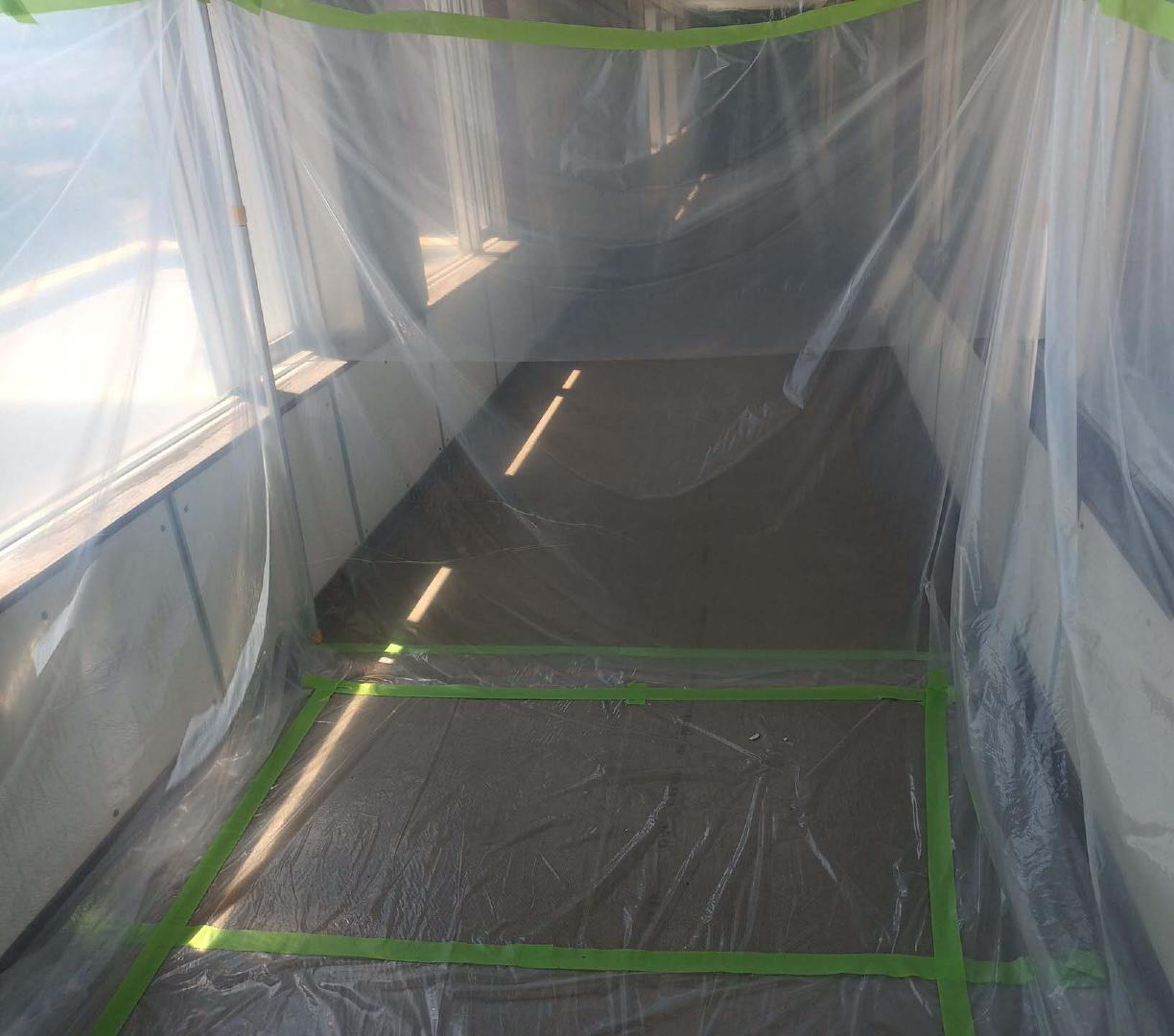 作業対象とする箇所の周囲に支柱を立て、ビニールハウス状にすることで、清掃範囲も養生材の使用も最低限で済みます。