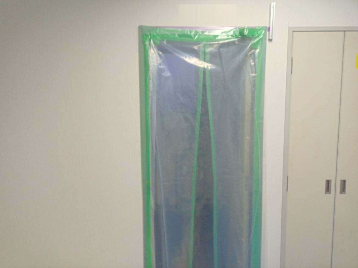 - 出入口はプラスチックシートを垂らして塞ぐ。