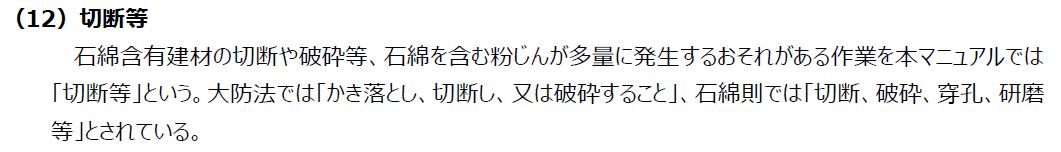 具体的には、解体作業に「切断、破砕、穿孔、研磨等」が含まれる際に隔離養生(負圧不要)を行うことになっています。