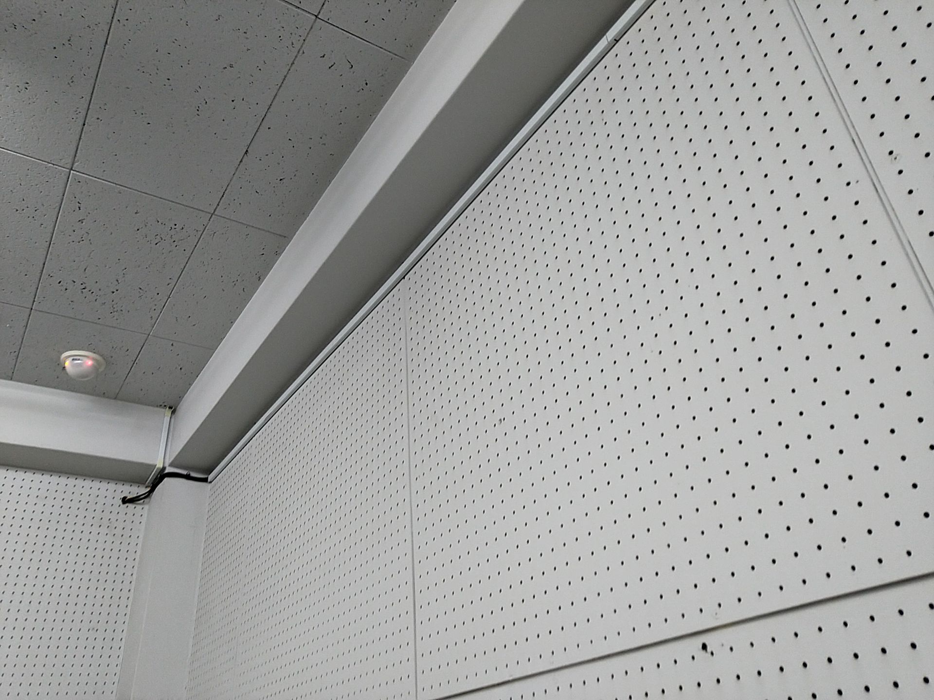 依頼者「よくわかりませんが、小さい丸穴がたくさん空いています。」(たぶん有孔石こうボード)