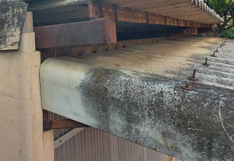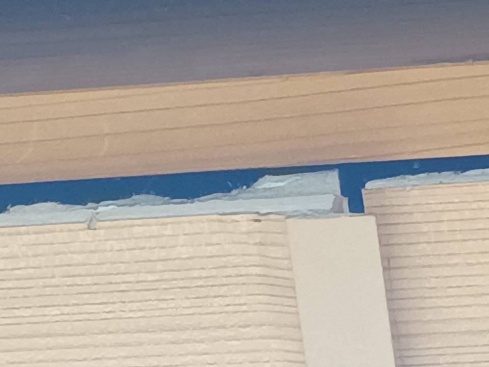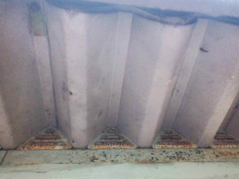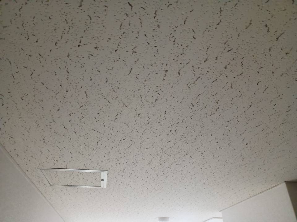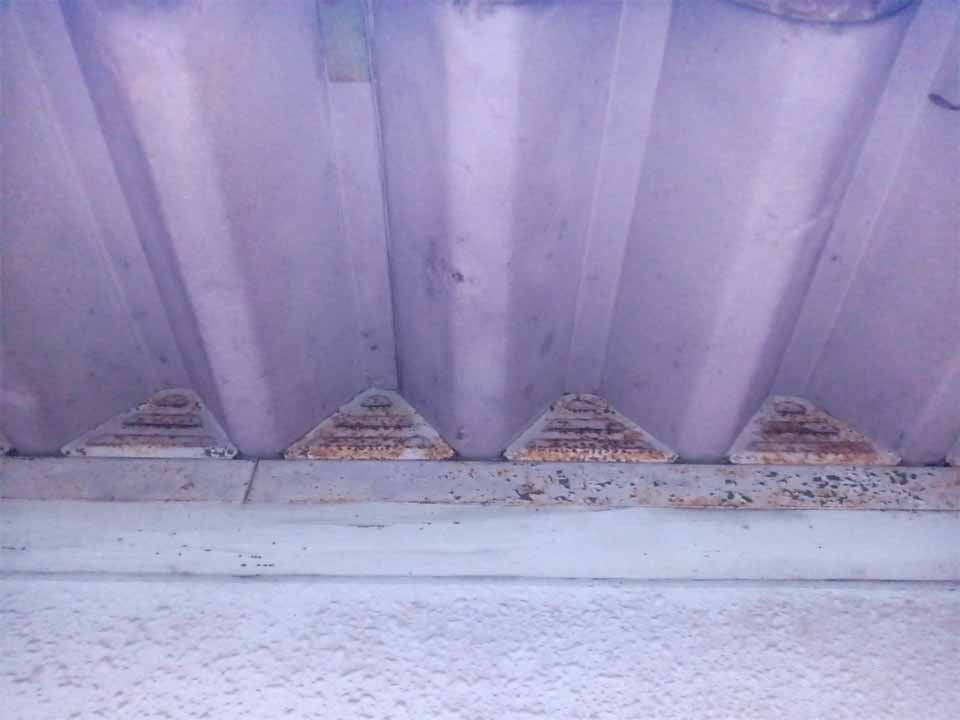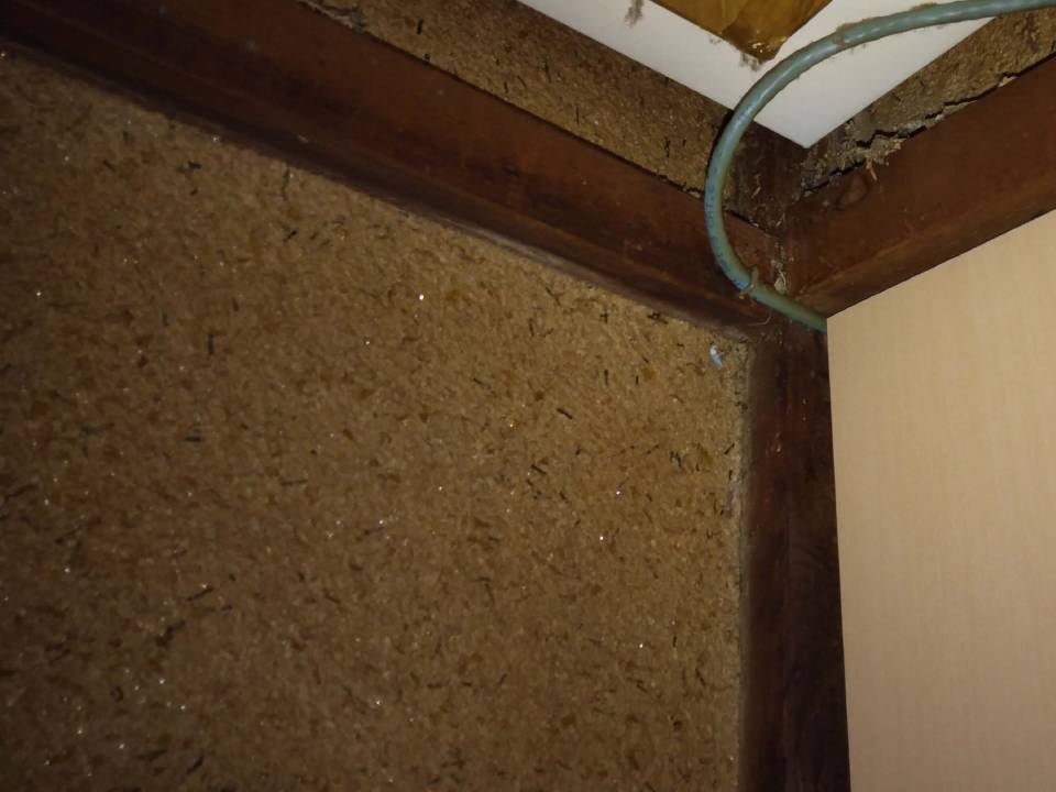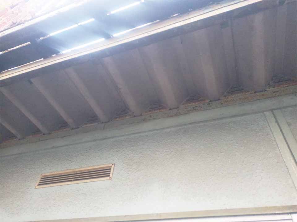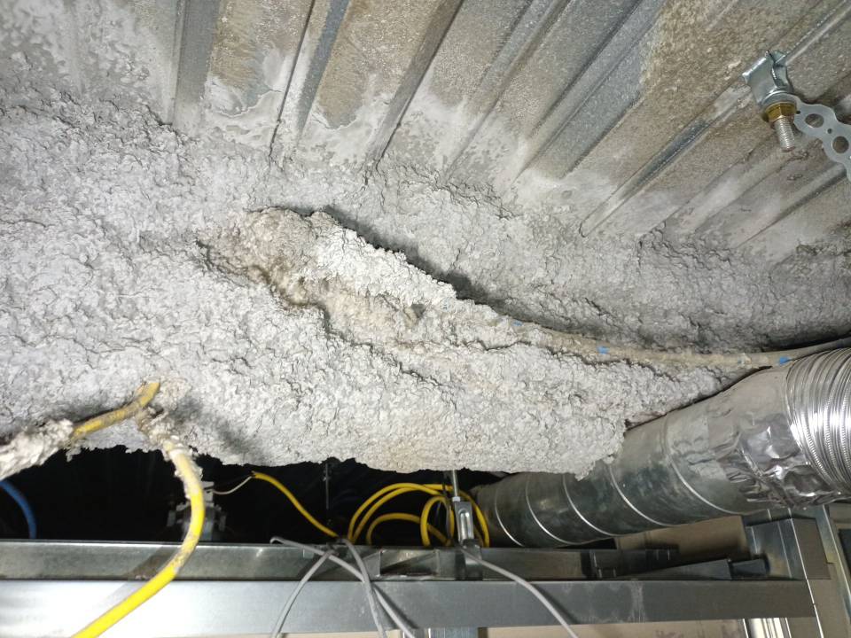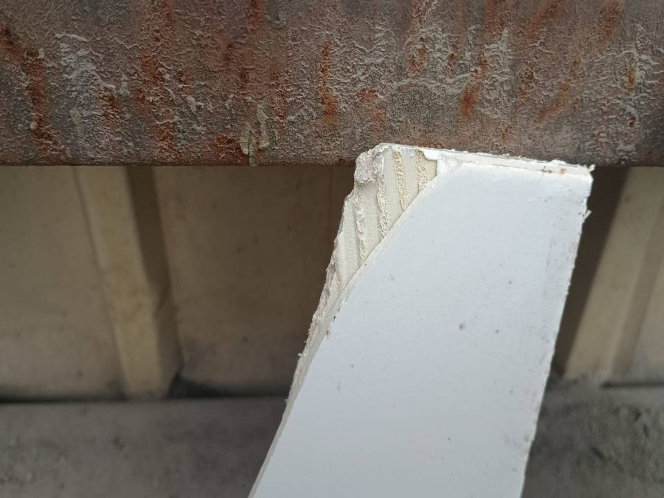 - 特徴:フェルト状、金属製の折板屋根裏に張り付いているシート状、スポンジ状、白色~灰色