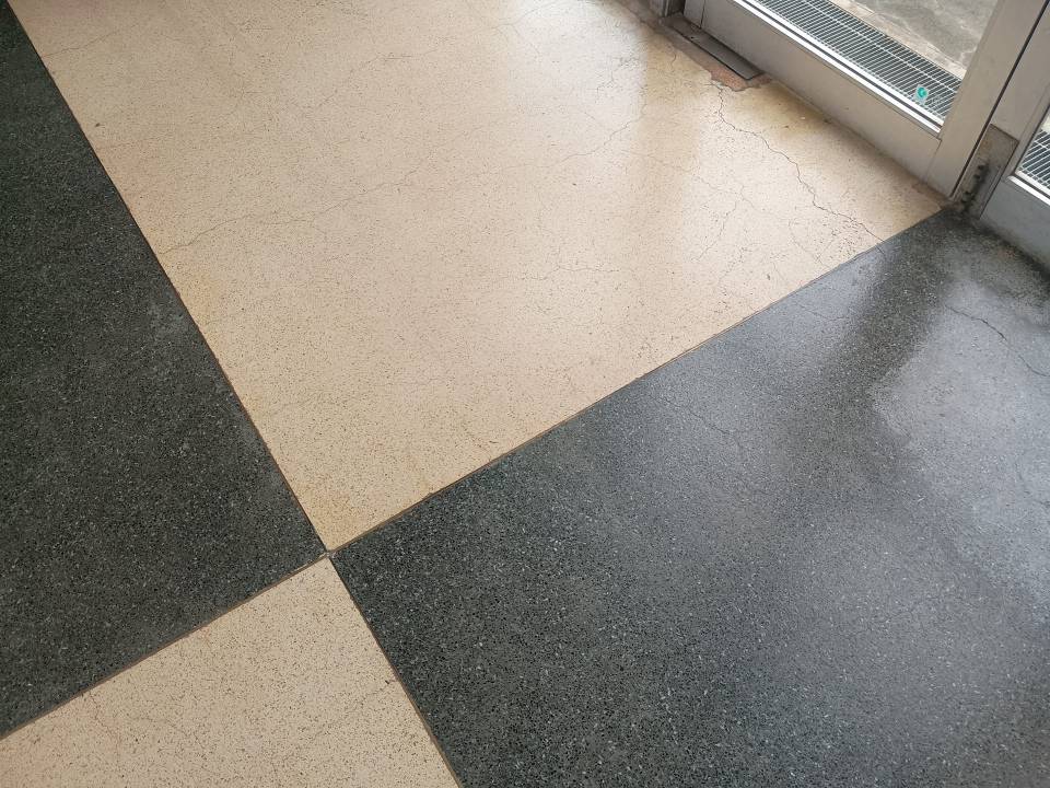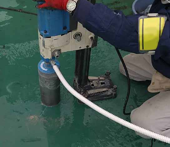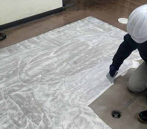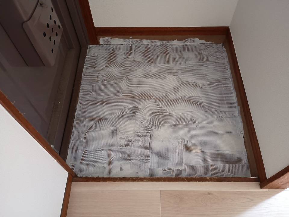 - スクレーパーとハンマーなどで削り取り。電動工具を用いた撤去。剥離剤を塗布してスクレーパーなどで削り取る