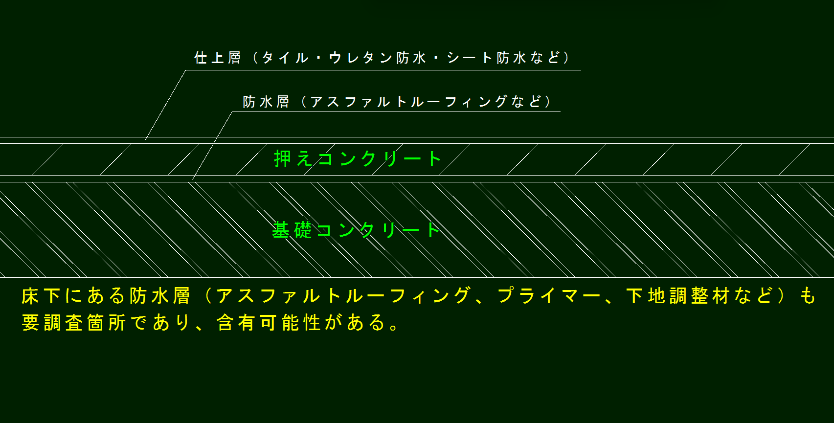 - その他注意点:化粧屋根スレート下に防水層、ルーフィングシートなどがある場合、それらも含有可能性有り