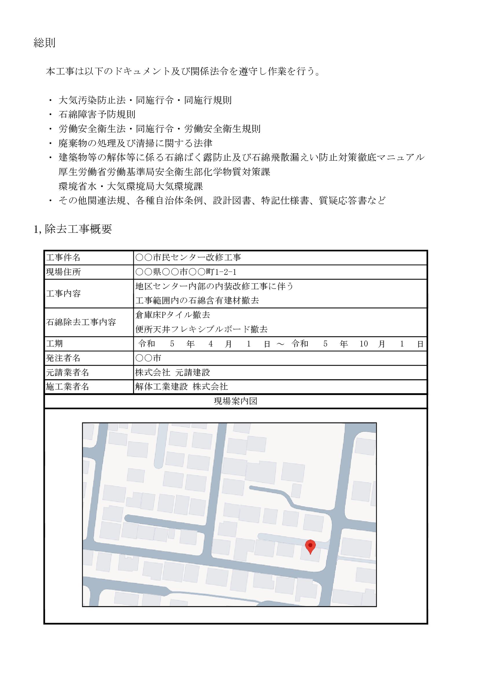 - 自社の工事に合わせて具体的に記述する
