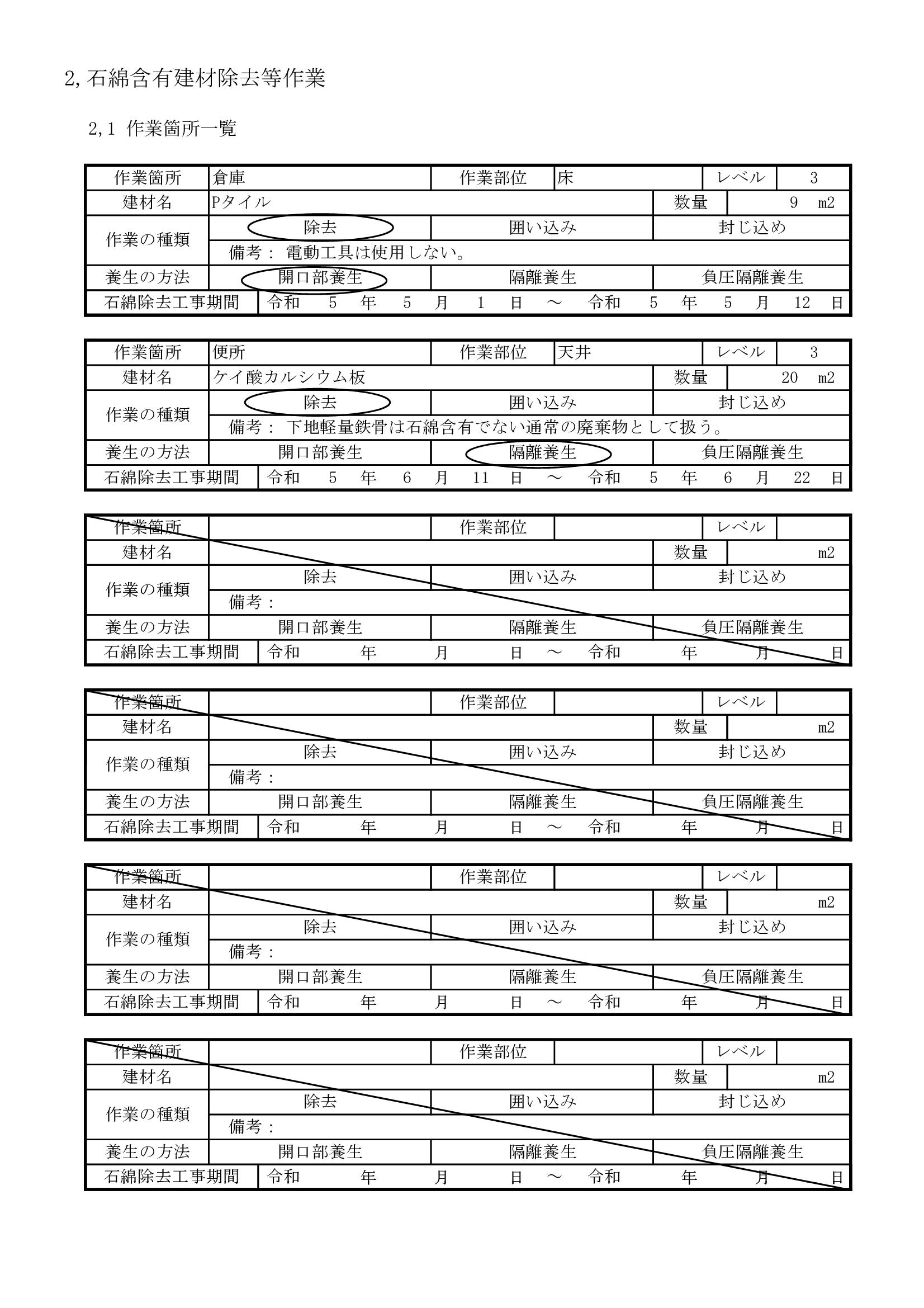 石綿除去工事作業計画書のテンプレート
