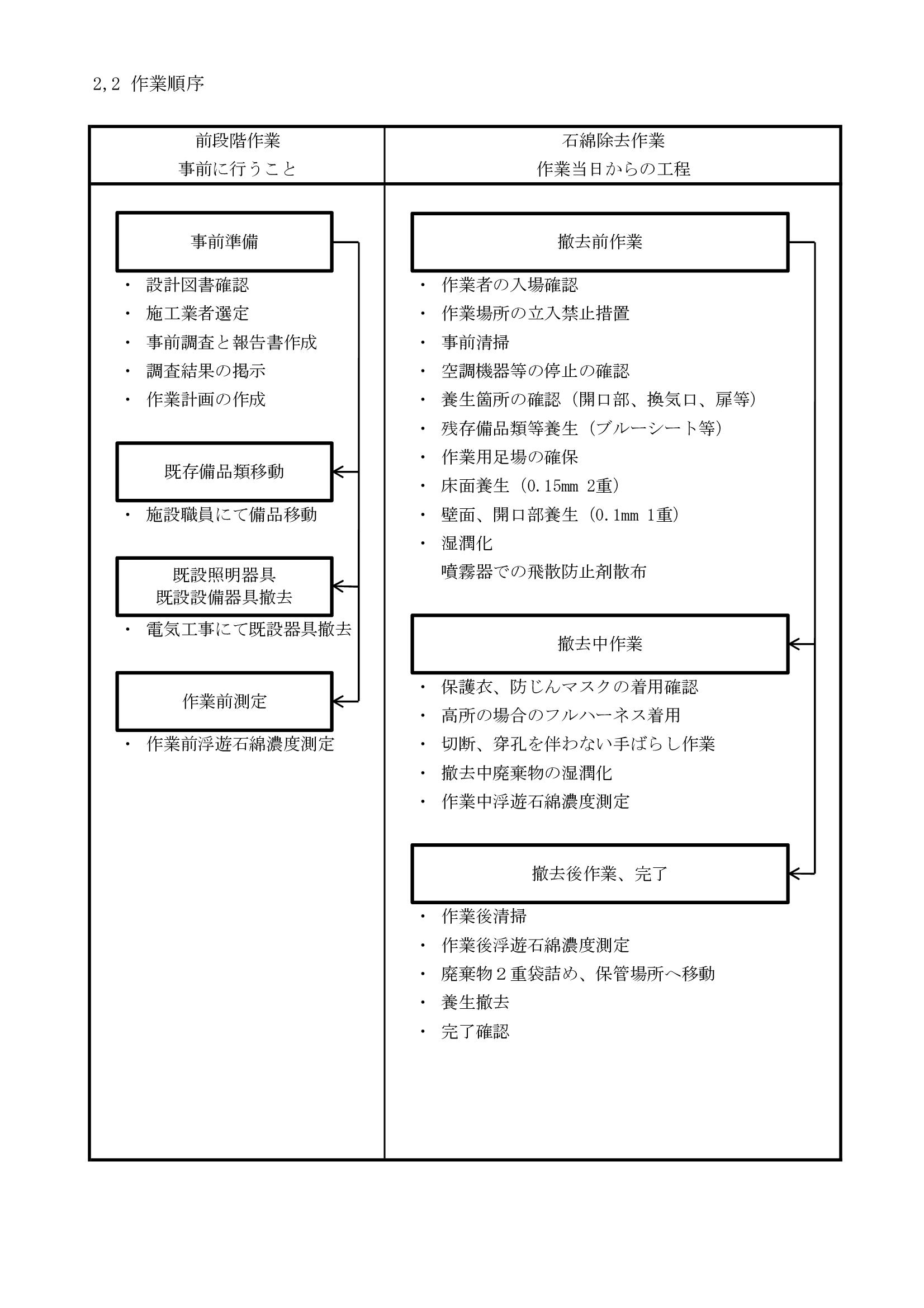 アスベスト除去作業に関連する作業工程表を添付します。