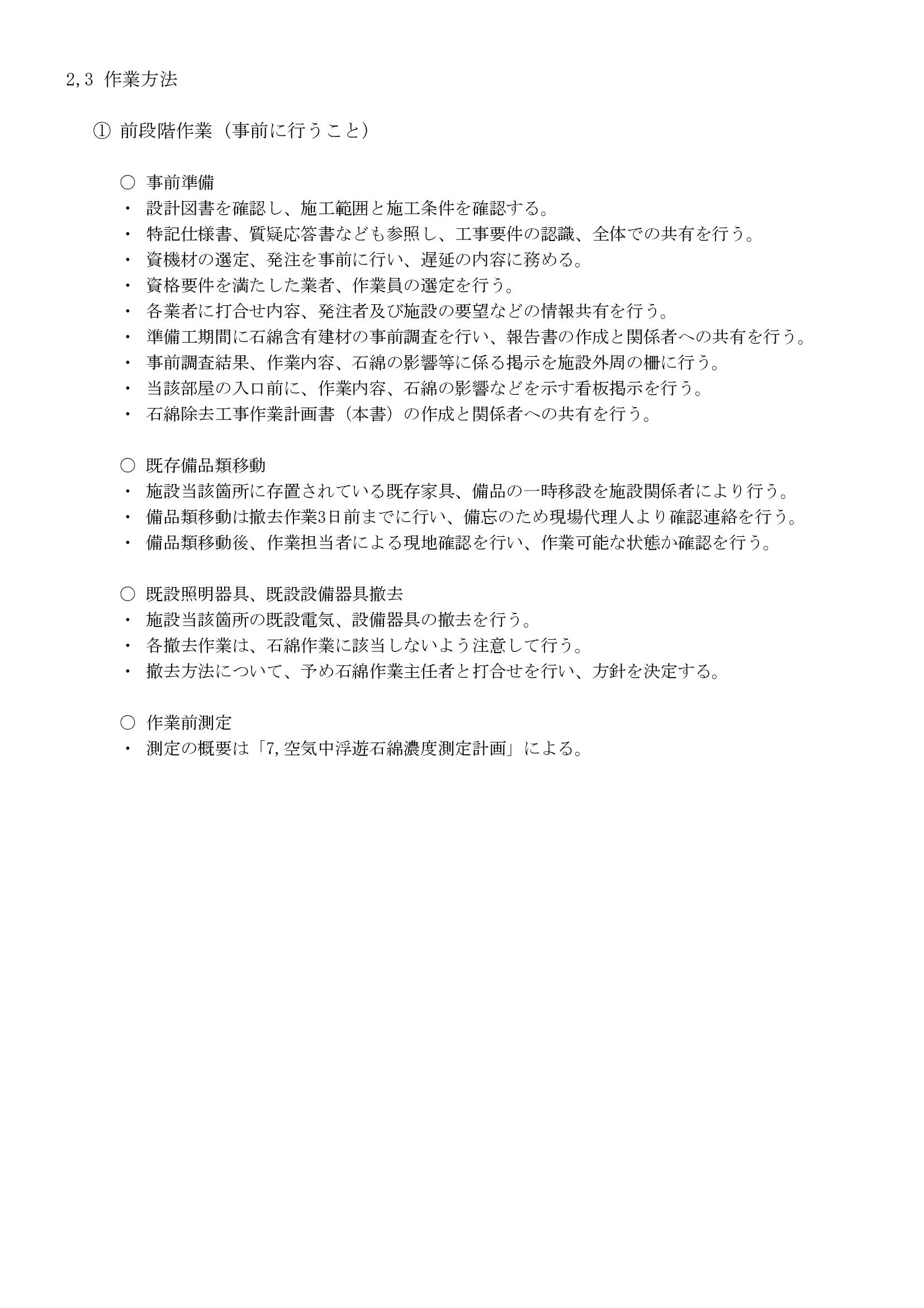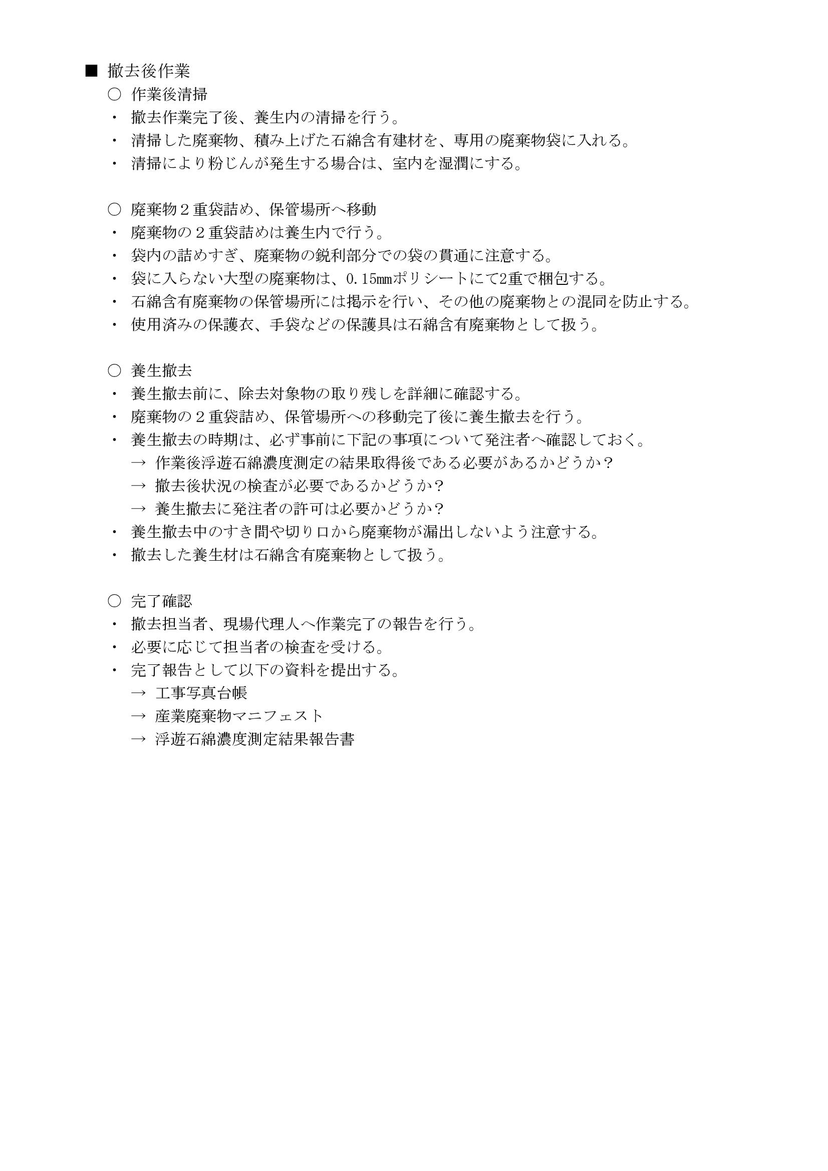 - 石綿飛散防止措置(具体的手順と作業方法)