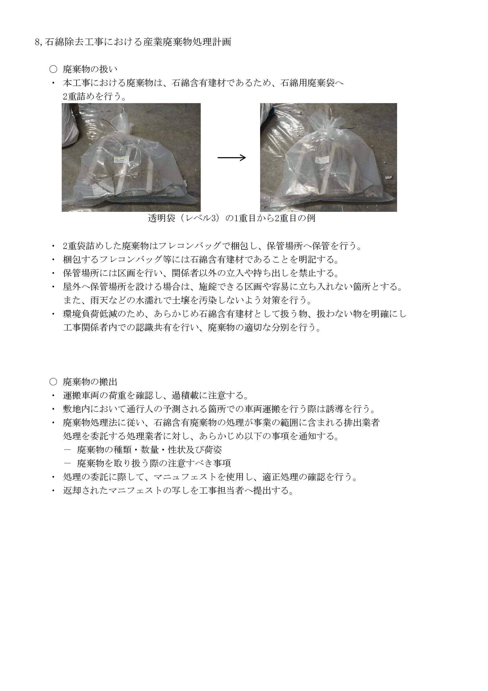 石綿除去工事における産業廃棄物処理計画