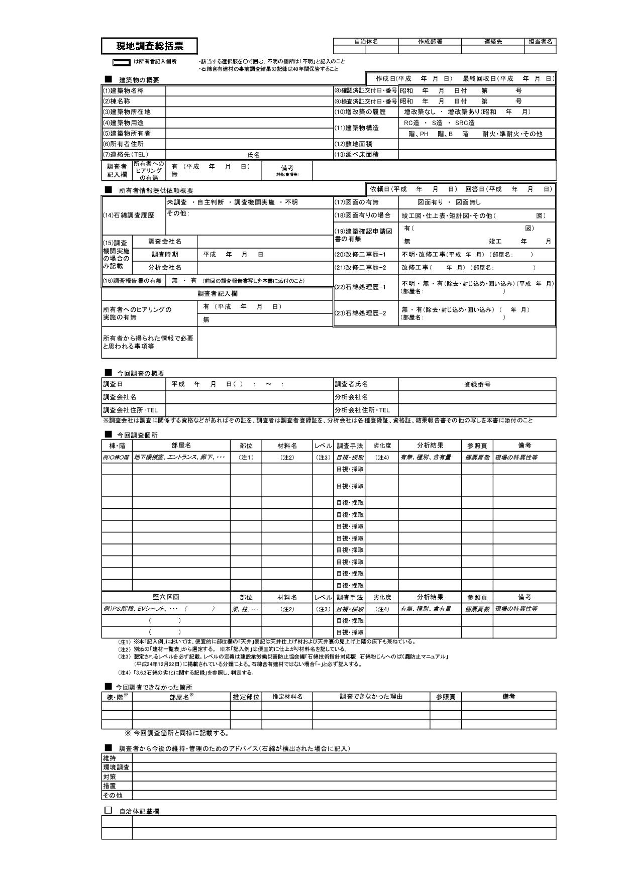 目視調査総括票・現地調査総括票