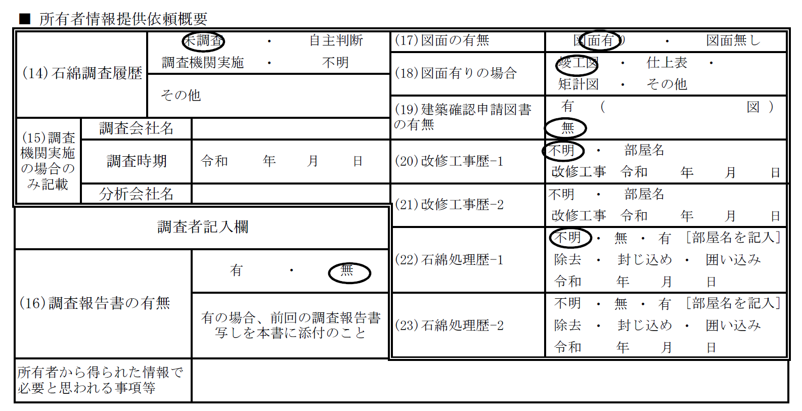 調査者自身が書く場合も、所有者からの情報提供が必要です。