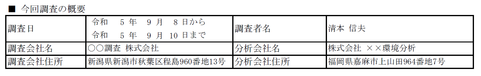 この記事で言う『調査者』とは、この報告書を作成するあなた自身、またはあなたが依頼した調査資格者を指します。