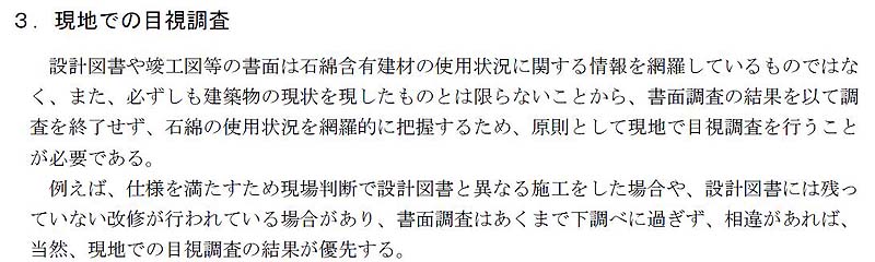 石綿調査は性悪説で行います。