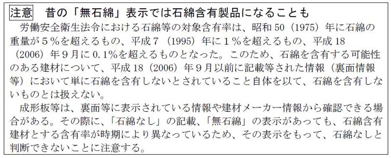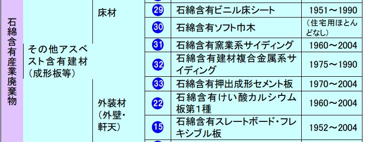 - 詳しい区分→厚生労働省:石綿情報ポータルサイト『建築物石綿含有建材調査者』