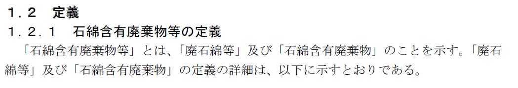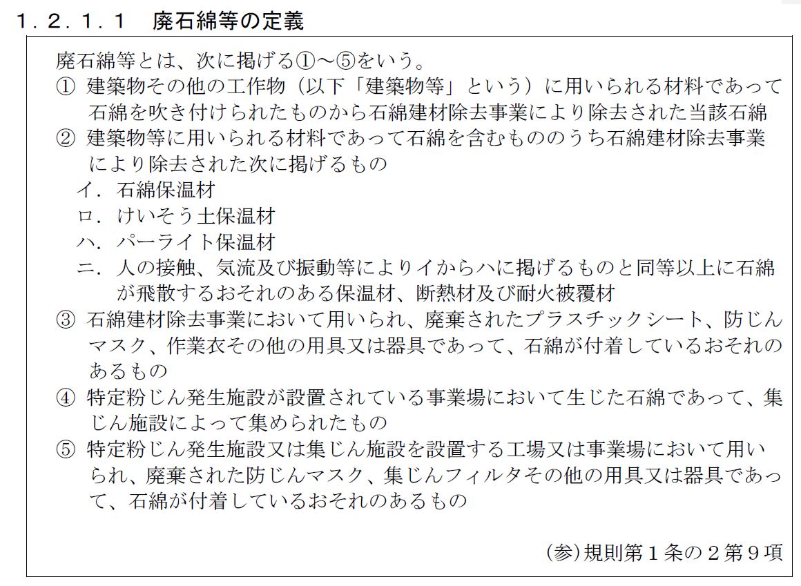 アスベストの含有した廃棄物は総括して『石綿含有廃棄物等』と呼ばれます。