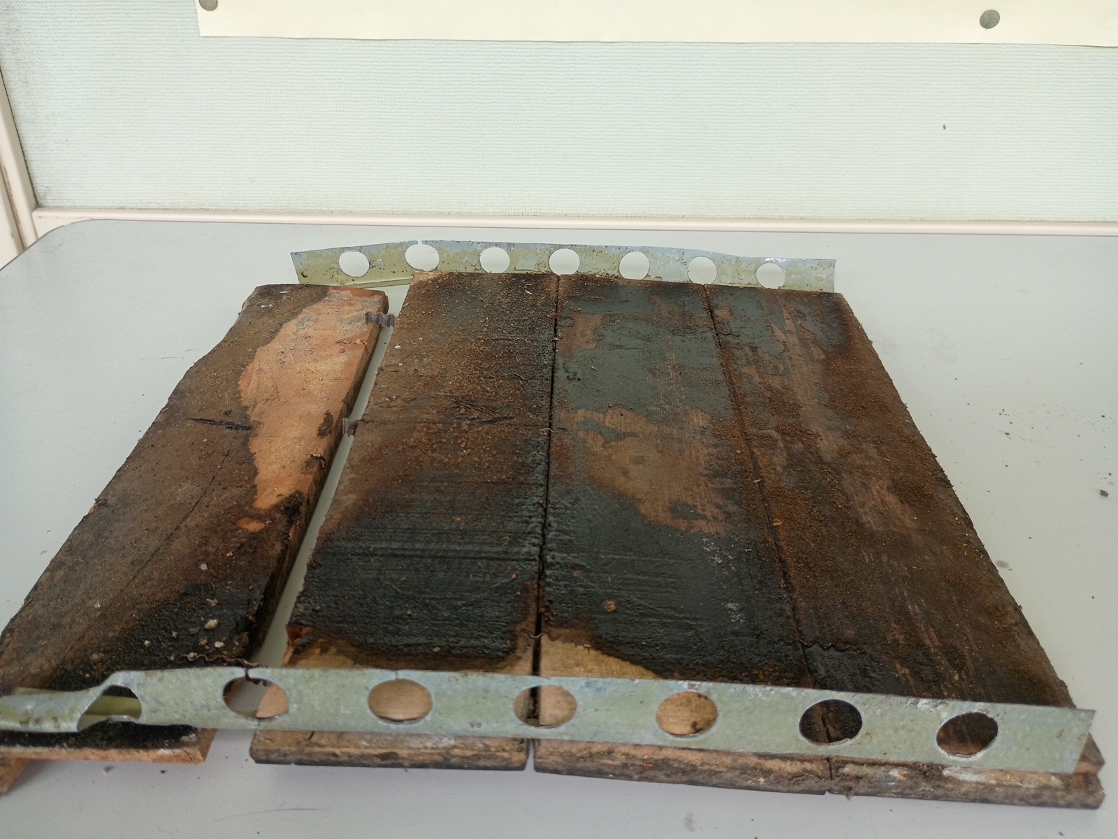 古い『湿式』のフローリングは底面に金属の爪が付いており、トロやノロと言われる「まだ固まっていない液状のモルタル」に爪を差し込んで浮かべるように並べていく工法で作られています。