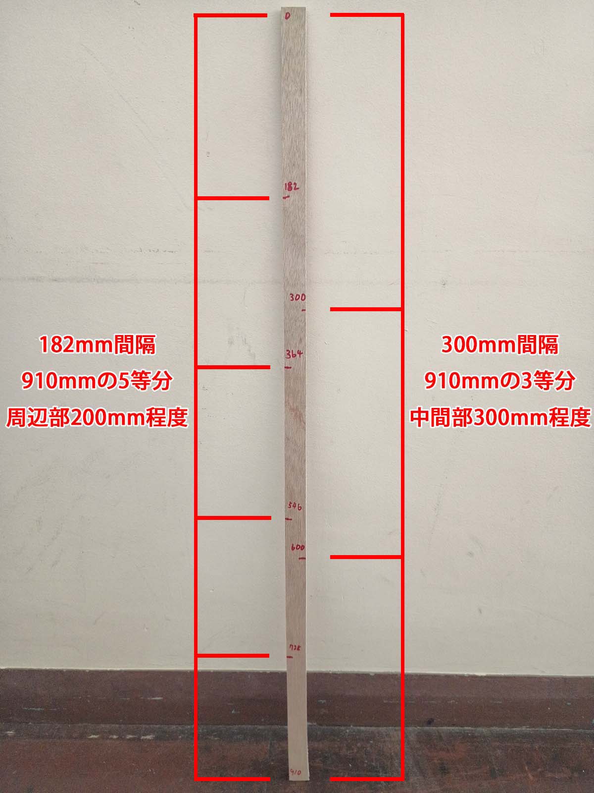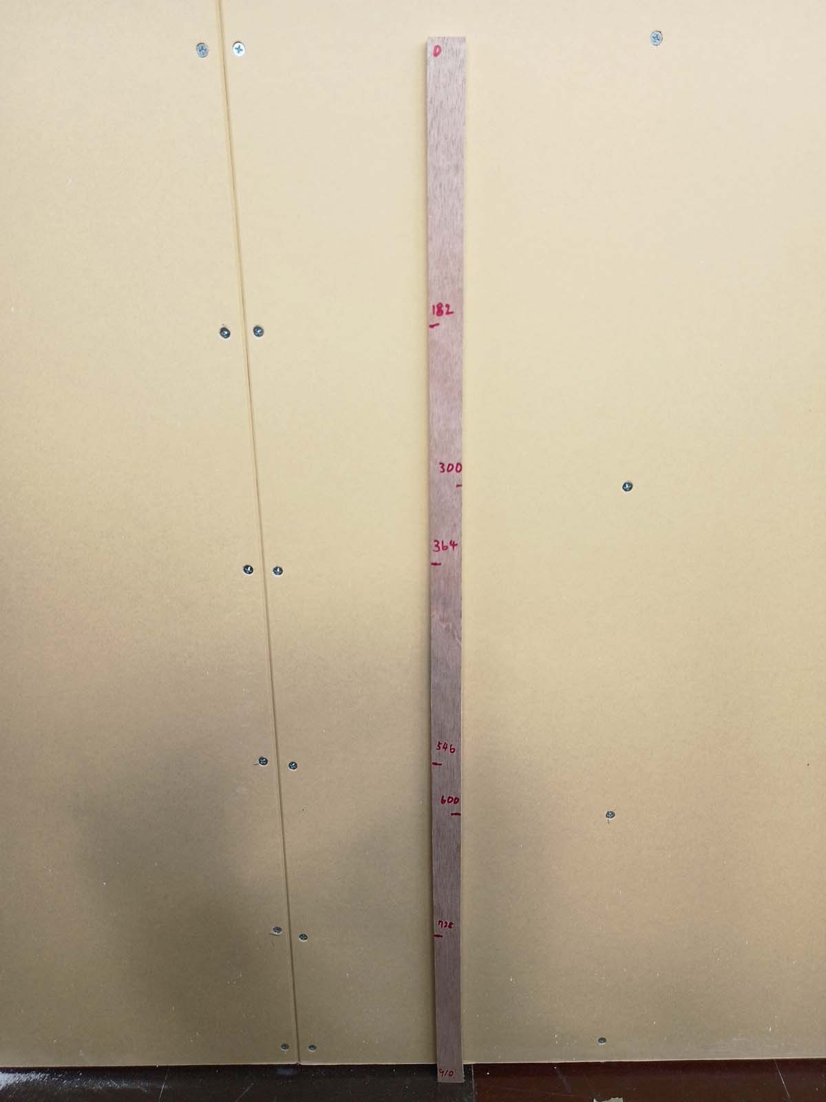 石こうボードの高さが1820mmだとして、1820÷10=182mm キリのいい割り付けとなります。