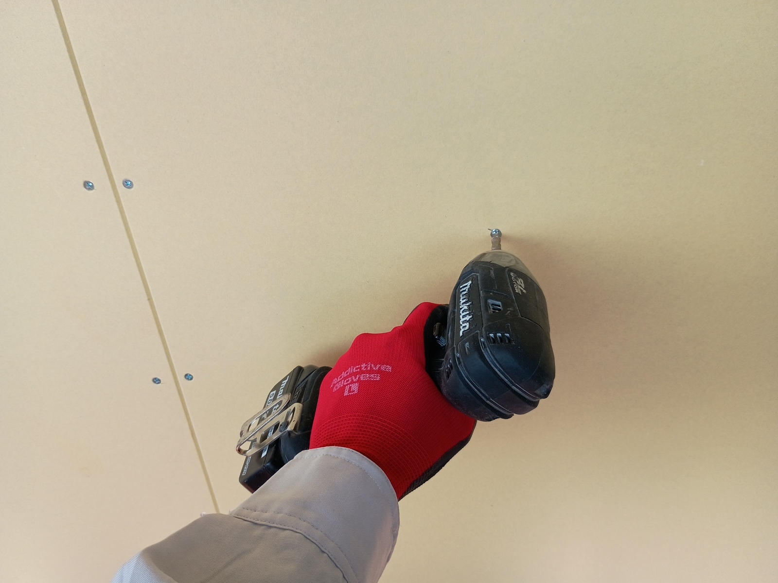 ビスは、ボード表面より0.5~1mm程度潜ったくらいが丁度良い仕上がりです。