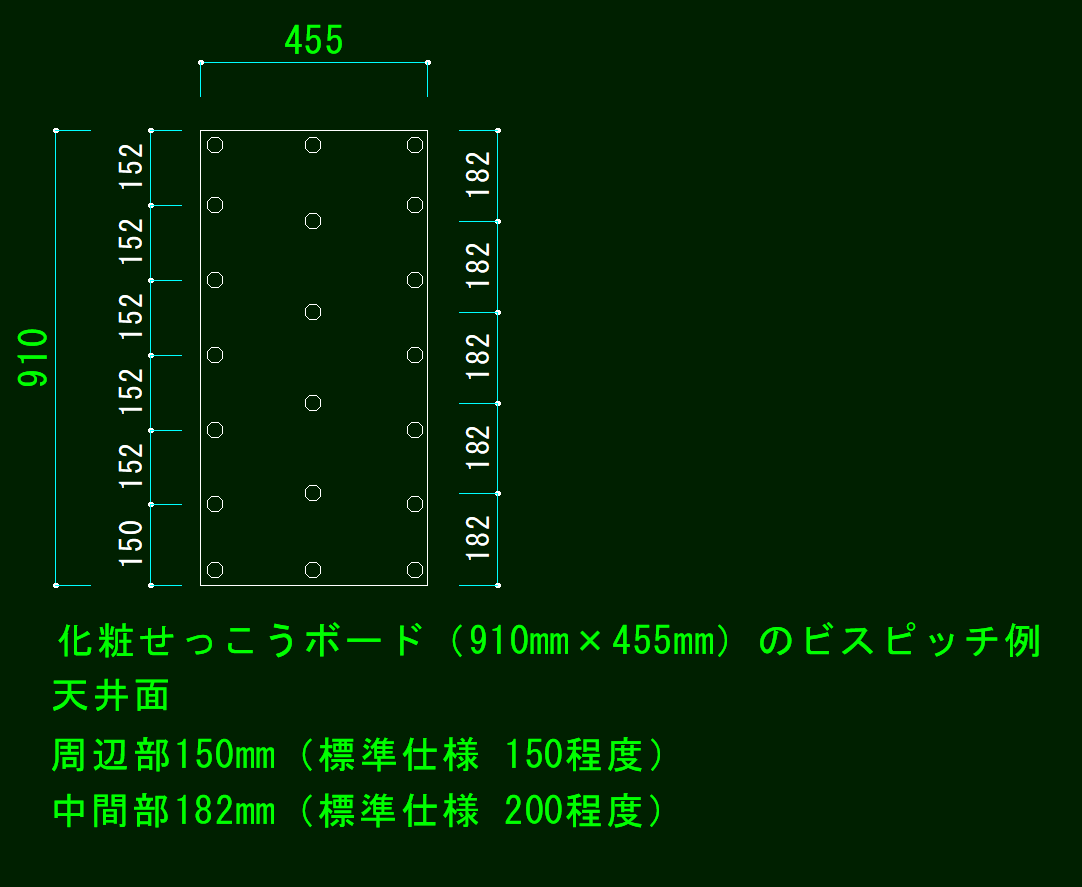 化粧石膏ボード 910×455 天井面のビスピッチ例