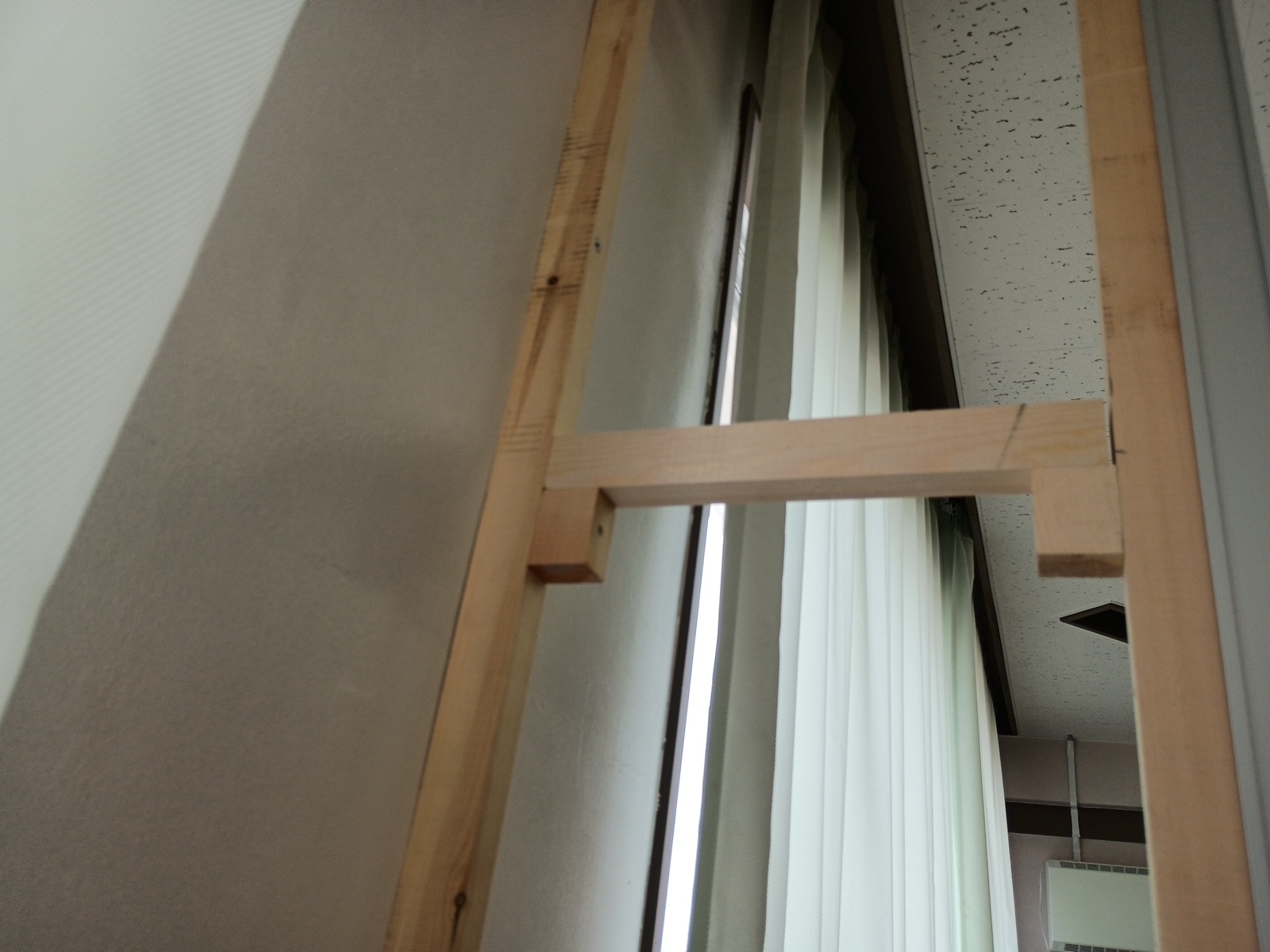 後は脚立などの足場に上り、水平器で垂直を測りながら天井面に斜め打ちをするのが簡単だと、個人的には思います。